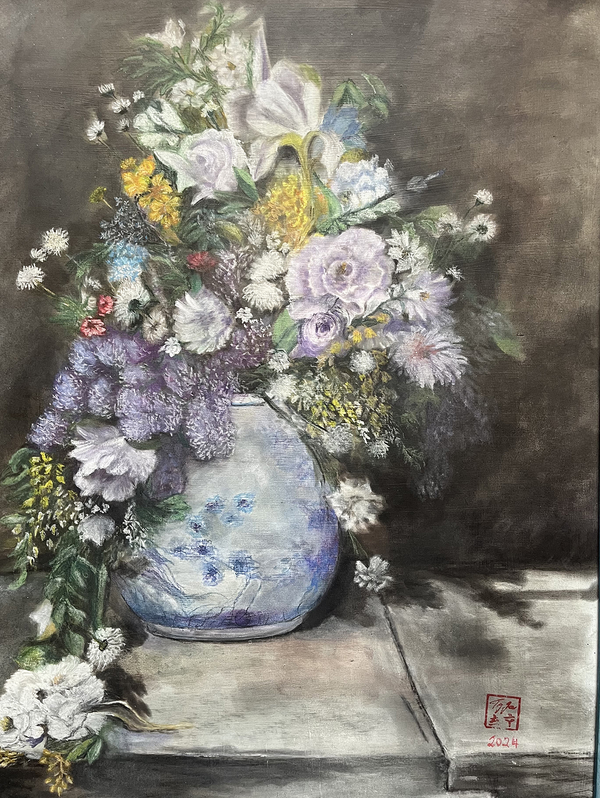 suchý pastel na kartonu, včetně rámu