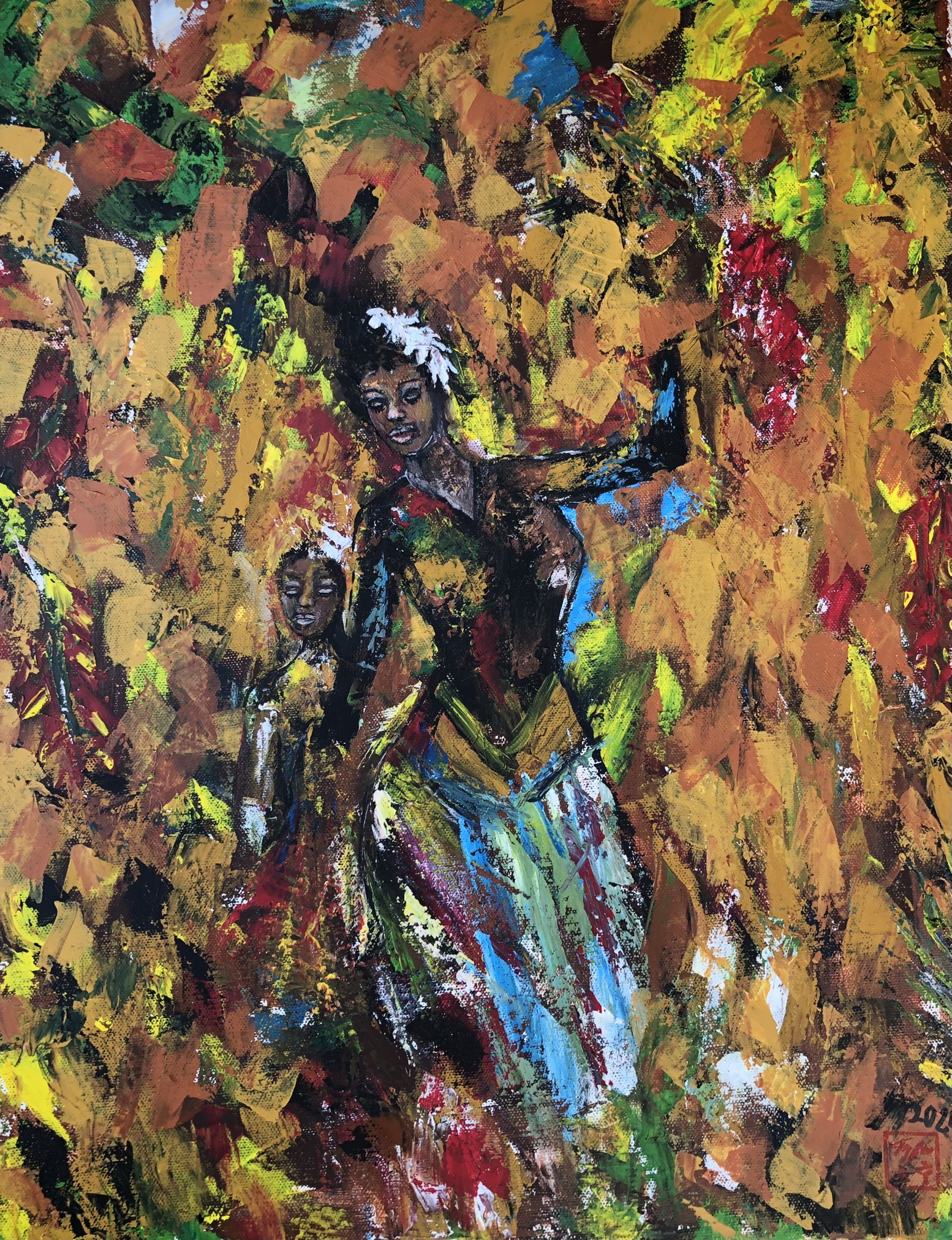akryl na plátně, impasto